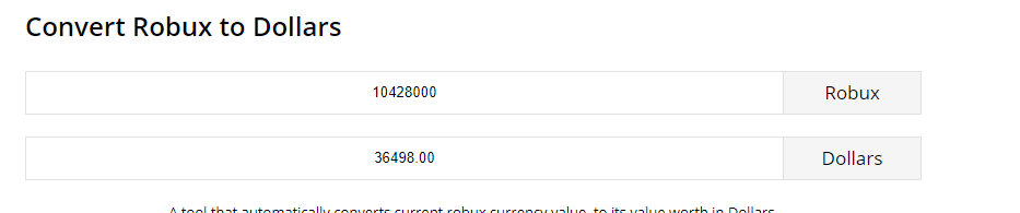 A tool that automatically converts current robux currency value to its value worth in dollars. Was this review helpful. If you hover over the amount of sales an item has it will display how much r and usd has been made from that item assuming the price has always been the same.